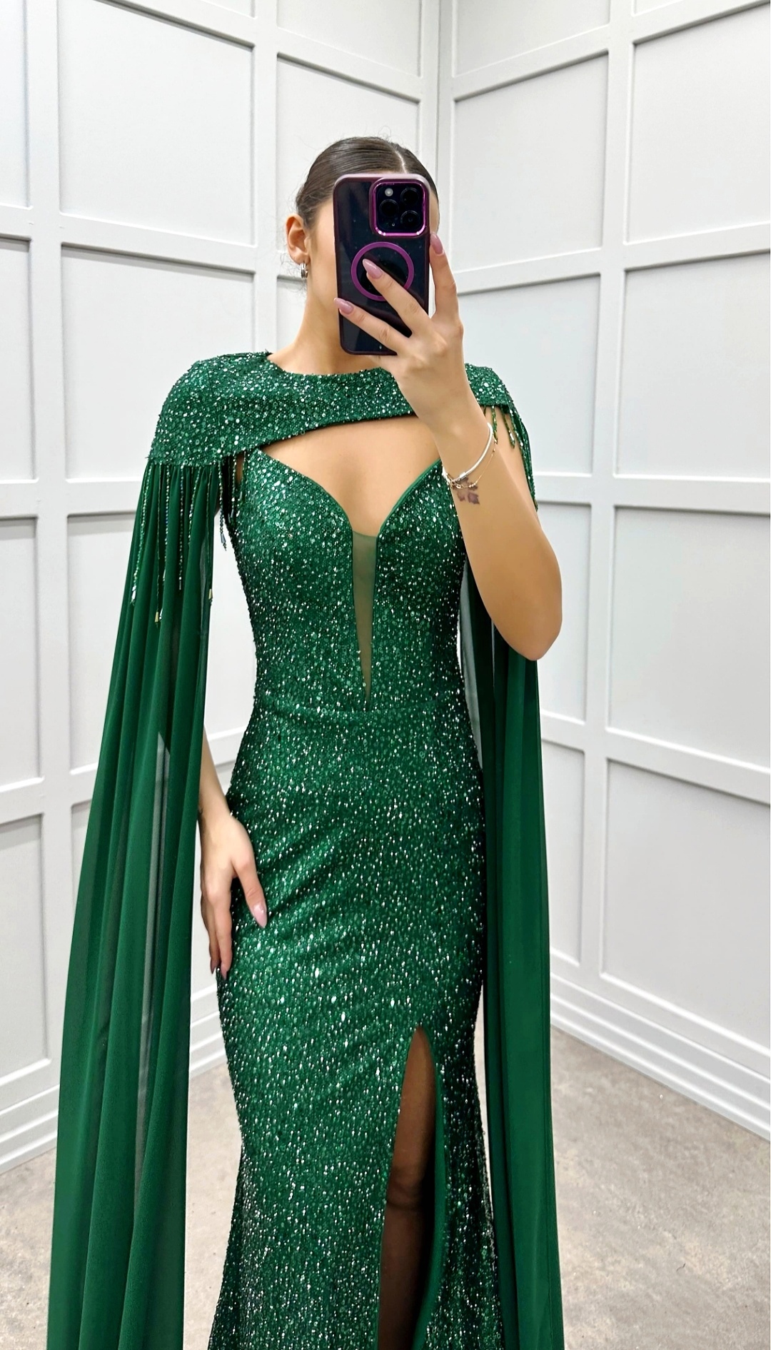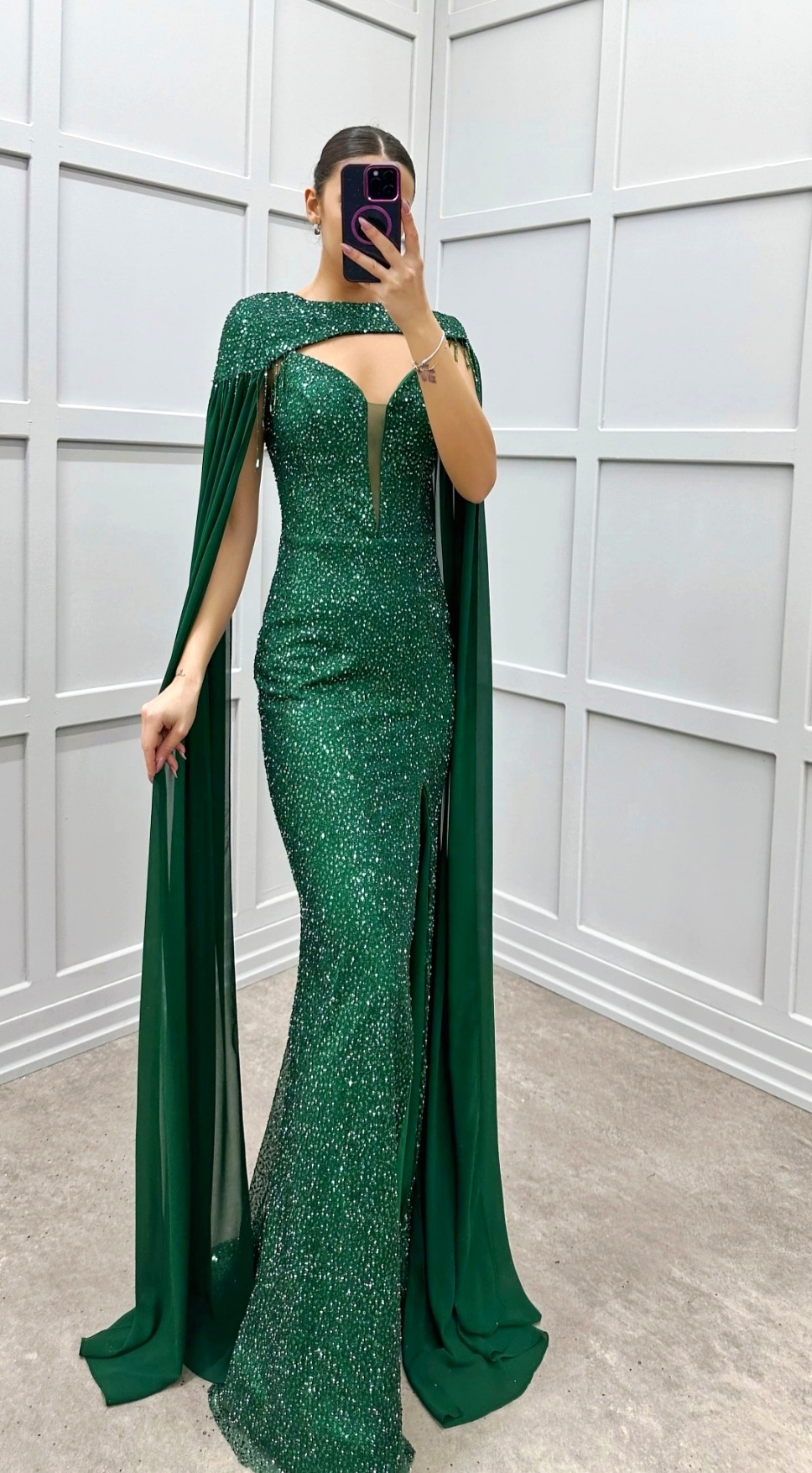 Εντυπωσιακό Πράσινο Βραδινό Φόρεμα με Κάπα & Σκίσιμο