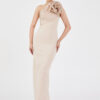 Βραδινό Μaxi Φόρεμα με Στρας & Πιέτες – Nude Champagne
